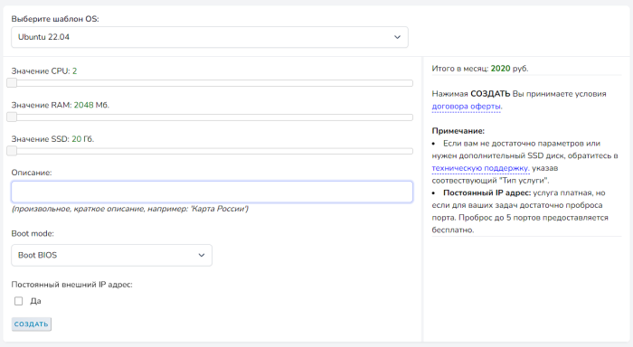 После нажатия кнопки «Создать» Вас автоматически переадресует на страницу «Консоль» в панели управления, где вы сможите установить ОС.
