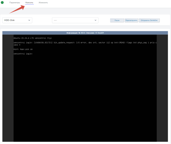 Для расширения тома диска необходимо подключиться к VM через SSH протокол или через Консоль управления в панели управления.