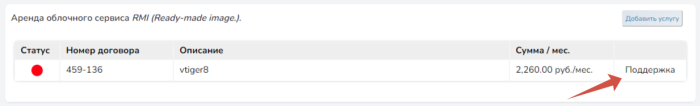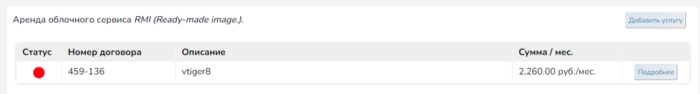 Шаг 0. Нажать кнопку "Добавить услугу" на против "Аренда облочного сервиса RMI (Ready-made image) ".