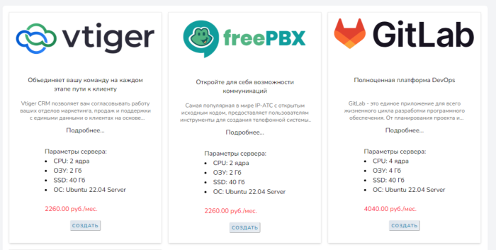 Инструкции по настройке услуг смотреть в разделе wiki « Готовые образы »
