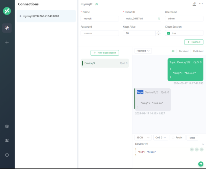 В образ включен MQTT Сlient (MQTTX) для настройки обмена сообщений.