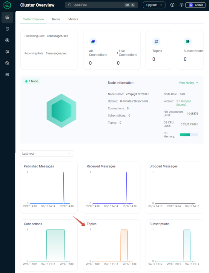 Готовый образ содержит MQTT Broker (EMQX) с web интерфейсом. EMQX предоставляет встроенную консоль управления, позволяющую пользователям отслеживать кластеры EMQX и управлять ими, а также настраивать необходимые функции с помощью веб-страниц.