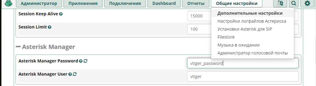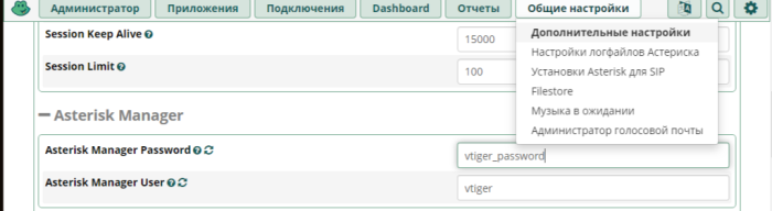 Установить пользователя и пароль, во FreePBX открыть Общие настройки → Дополнительные настройки → раздел Asterisk Manager