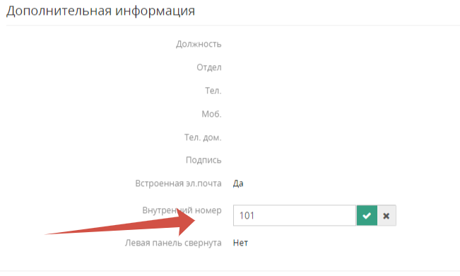 В разделе Дополнительная информация добавьте Внутренний номер.