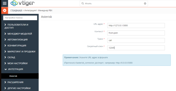 Запуск VTiger Asterisk Connector
